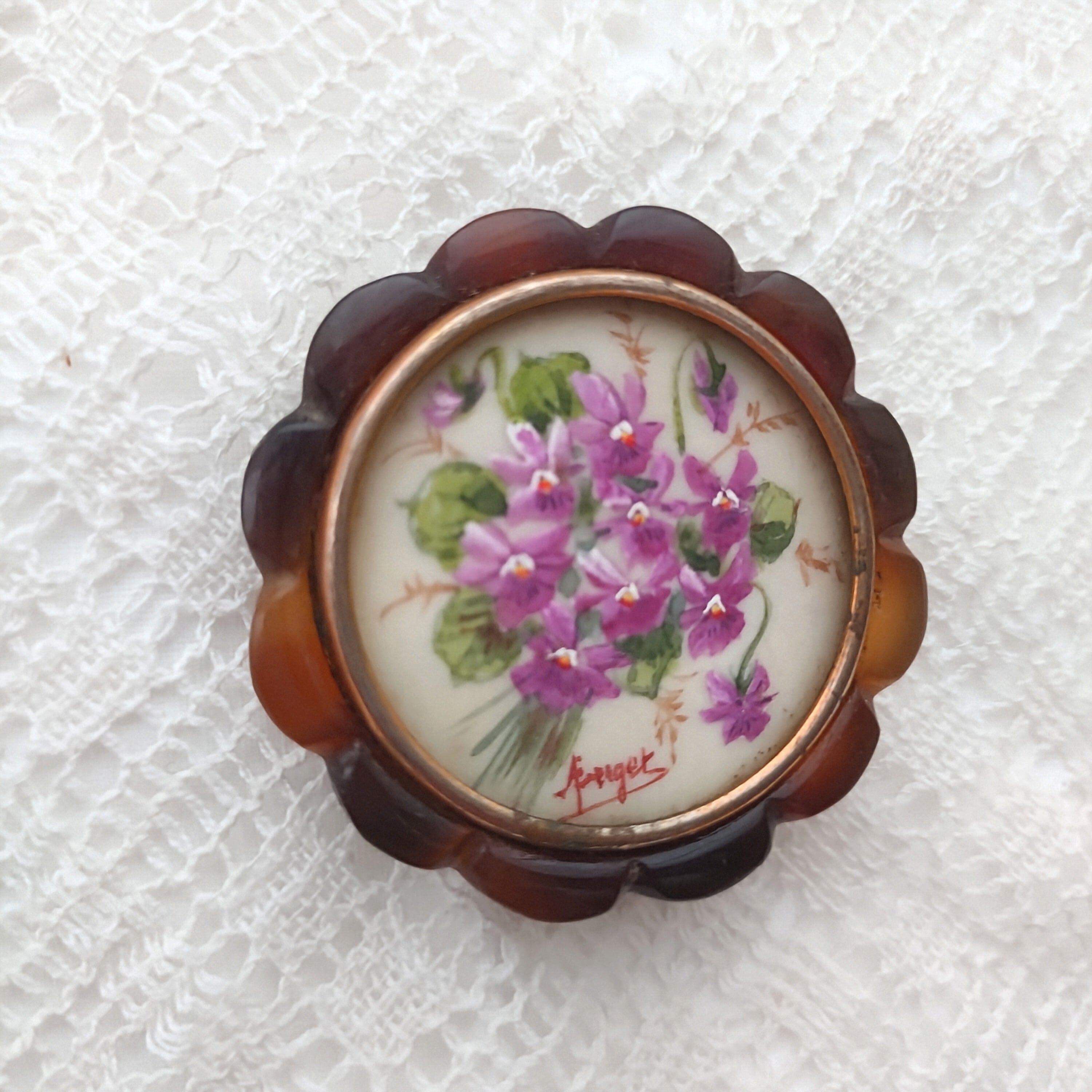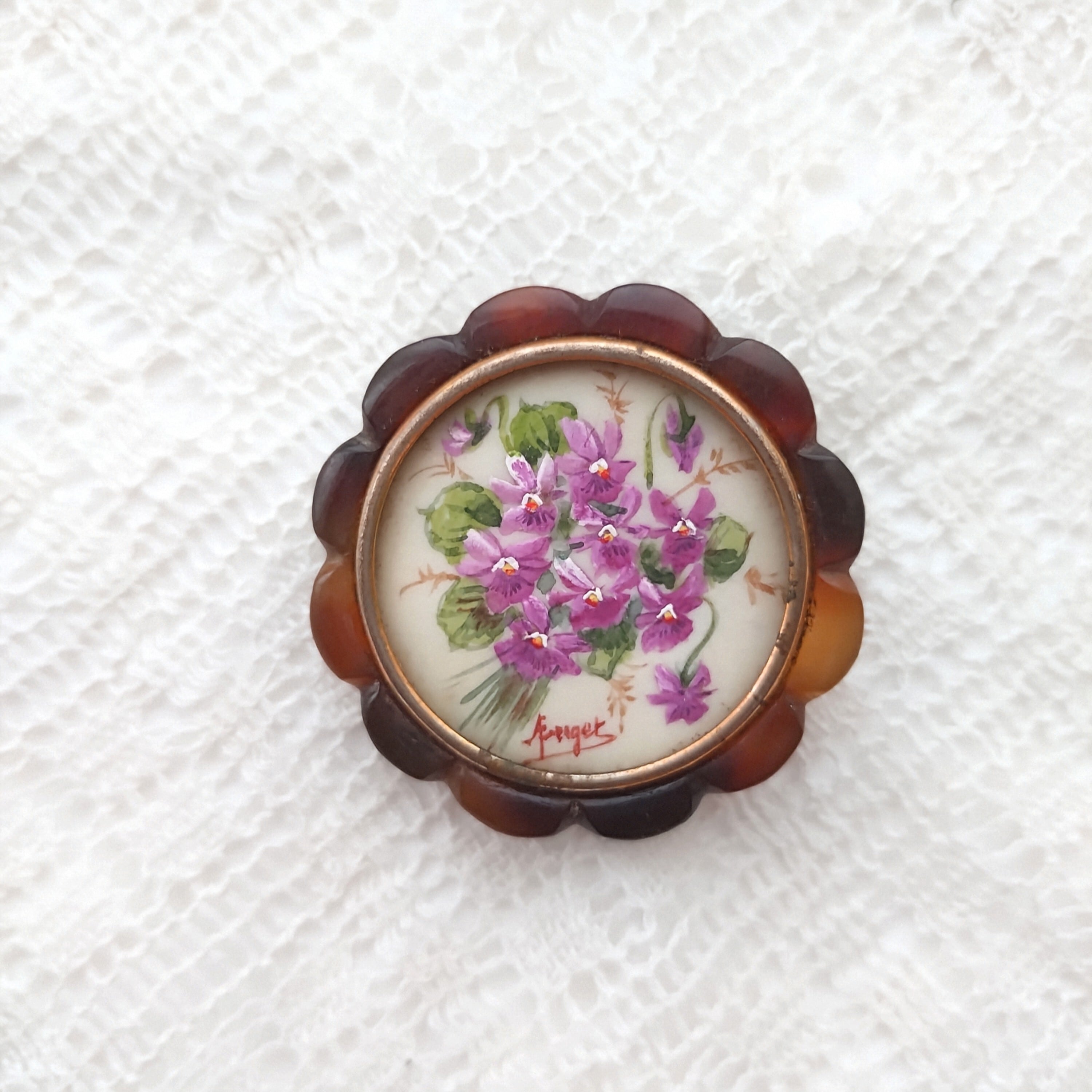 アンティーク ヴィンテージ 手描きブローチ スミレ アクセサリー フランス