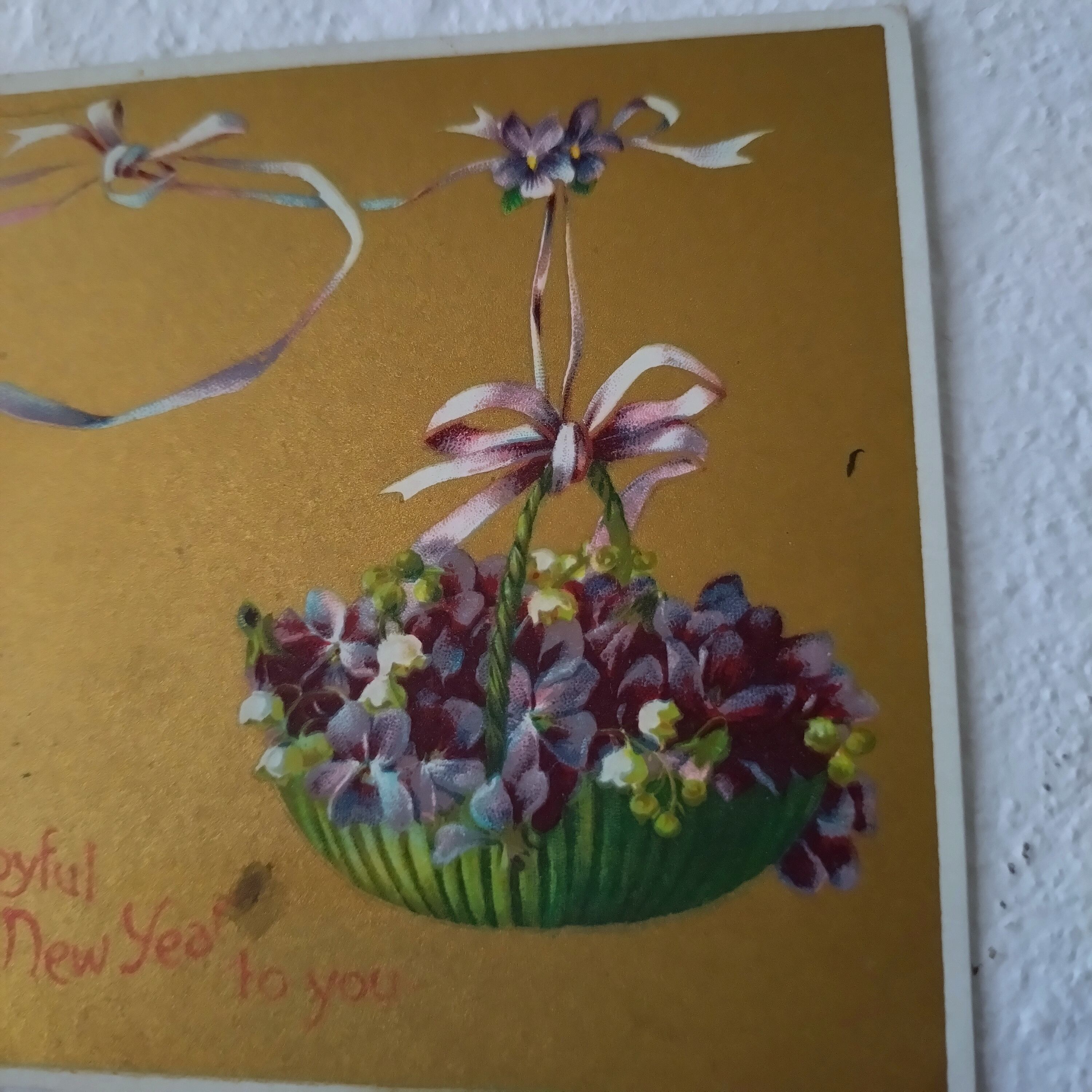 スミレのパニエがダブルで描かれた新しい年をお祝いするカード