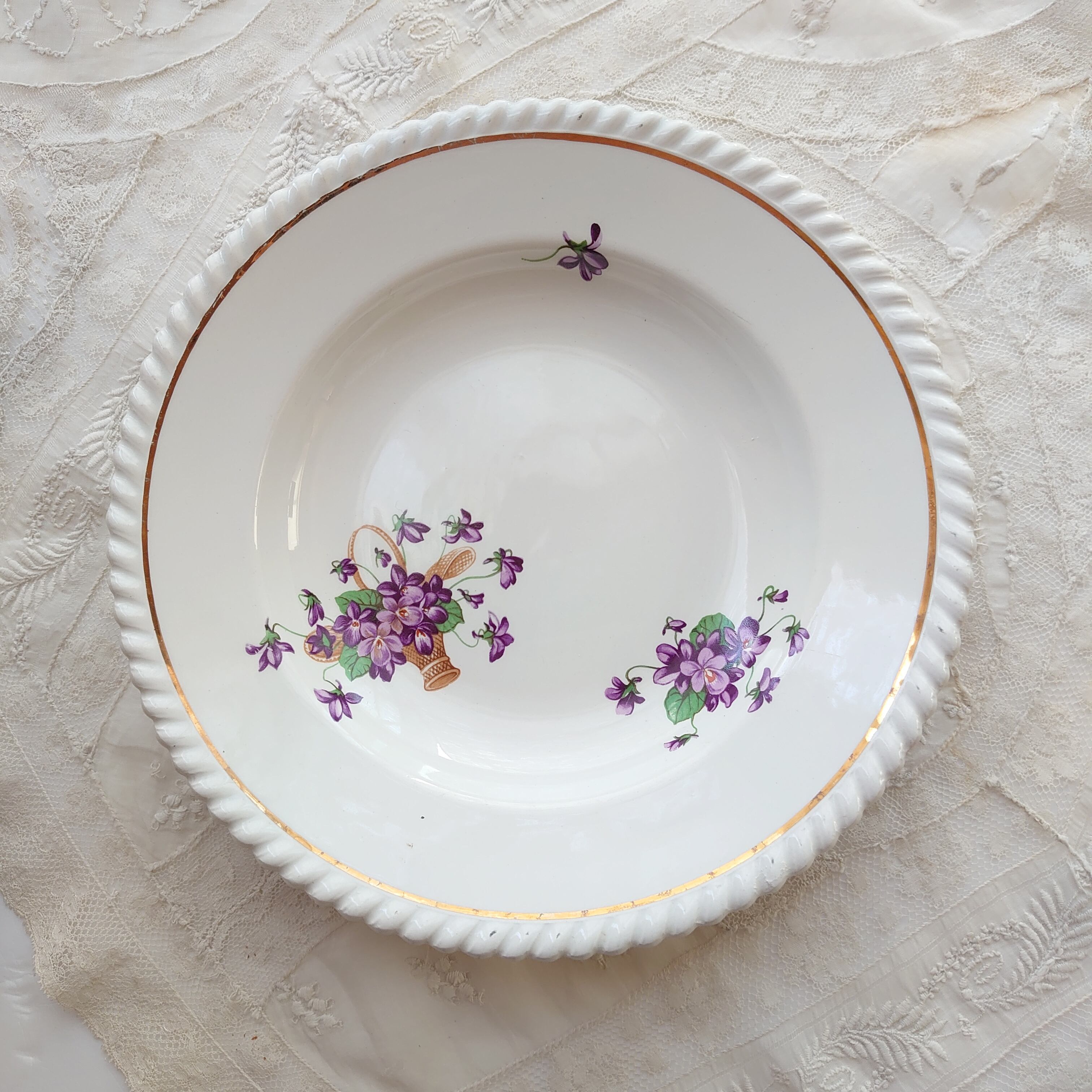 今回ご紹介するのは、直径23cmのサイズですみれが描かれた一品。可愛らしいすみれが上品で洗練された印象を与えます。