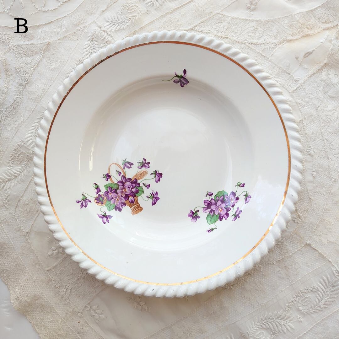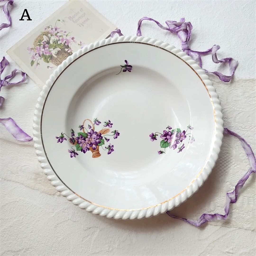 アンティーク ヴィンテージ 平皿 フランス 23cm すみれ スミレ Lunevill K&G リュネヴィル