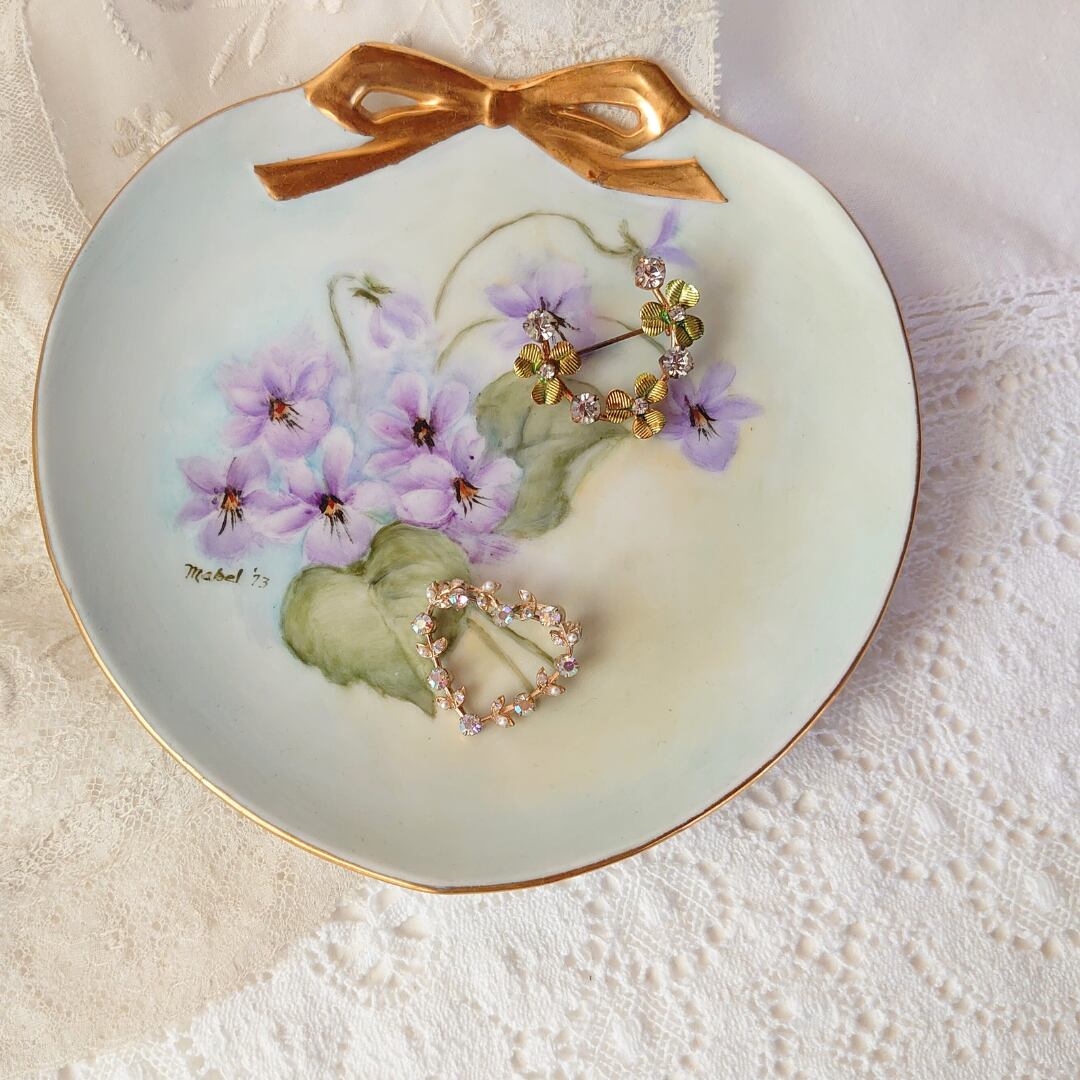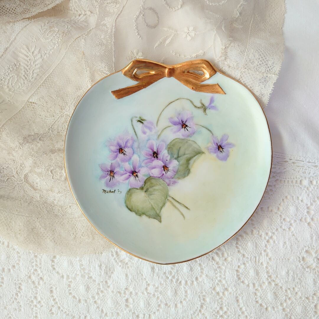 アンティーク ヴィンテージ フランス ポーセリン ジュエリートレイ 手描き スミレ すみれ