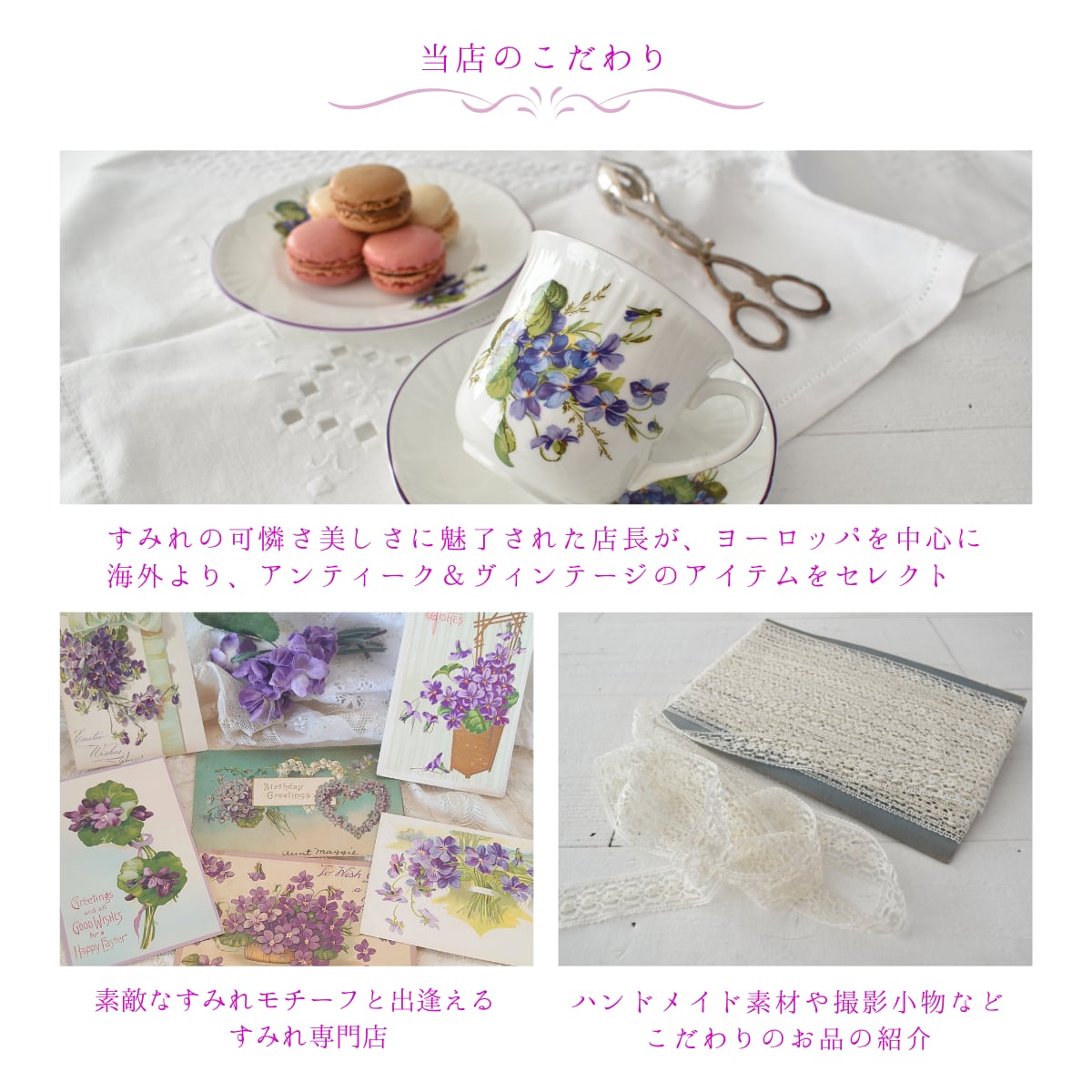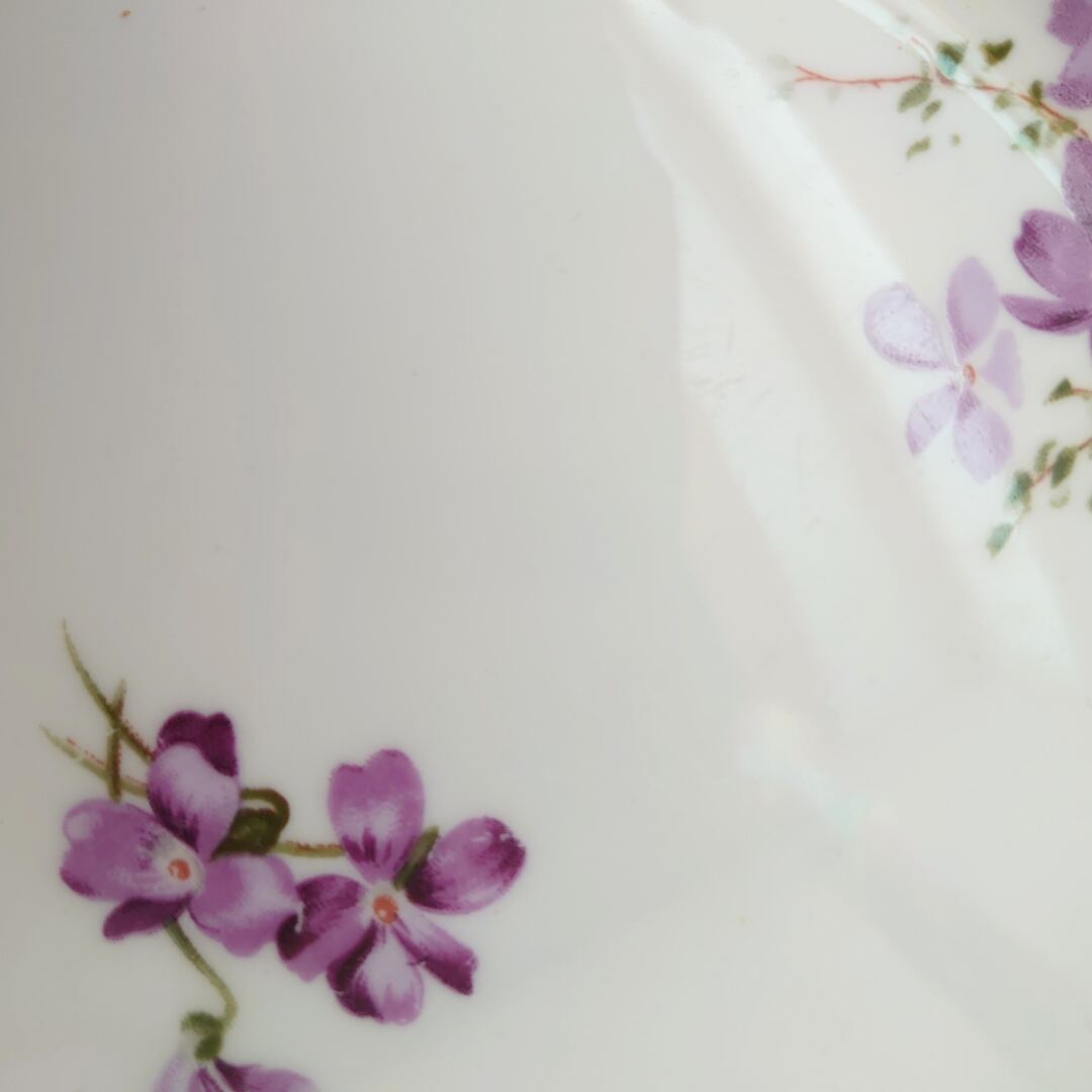 繊細に描かれたスミレの花柄が、エレガントで上品な雰囲気を演出します。
