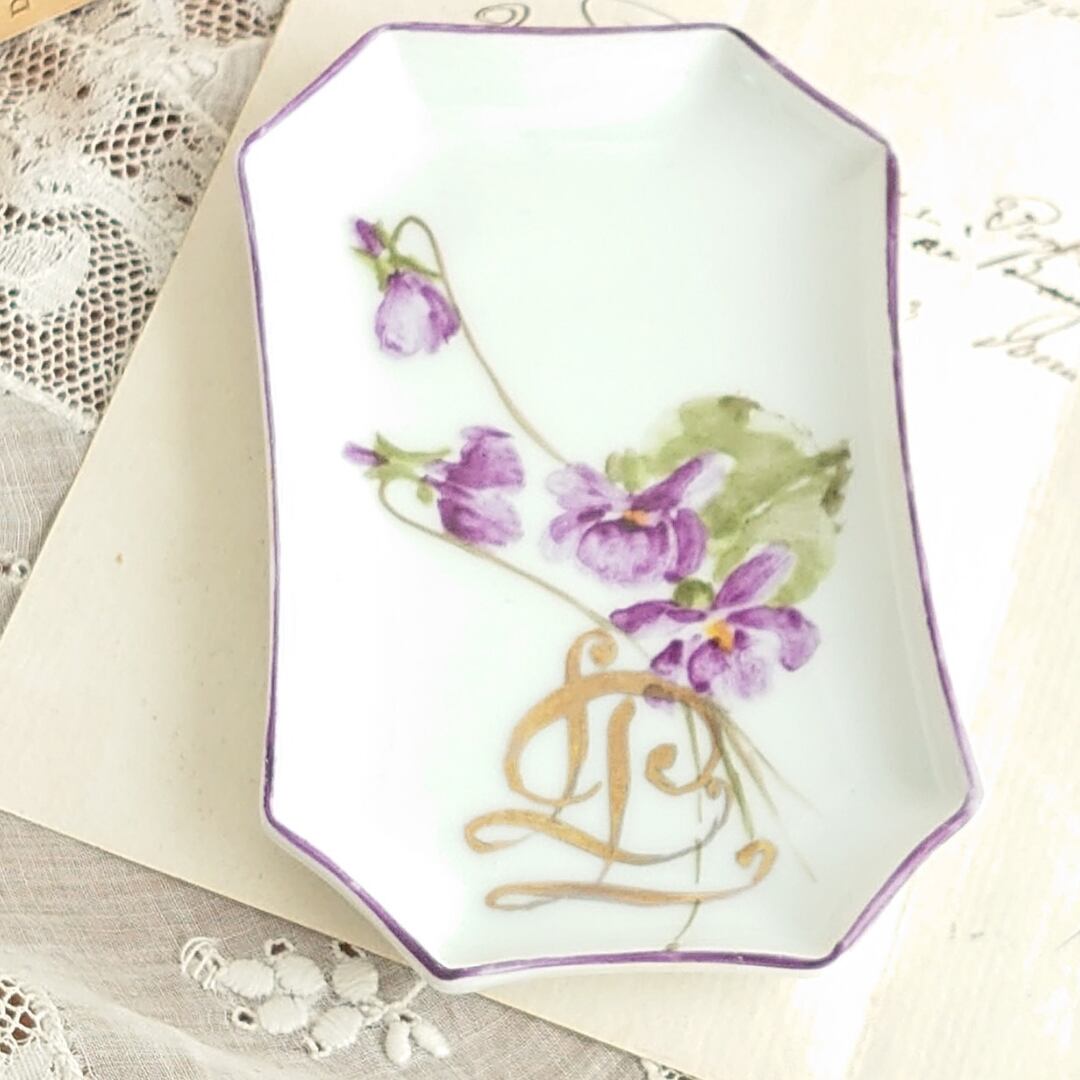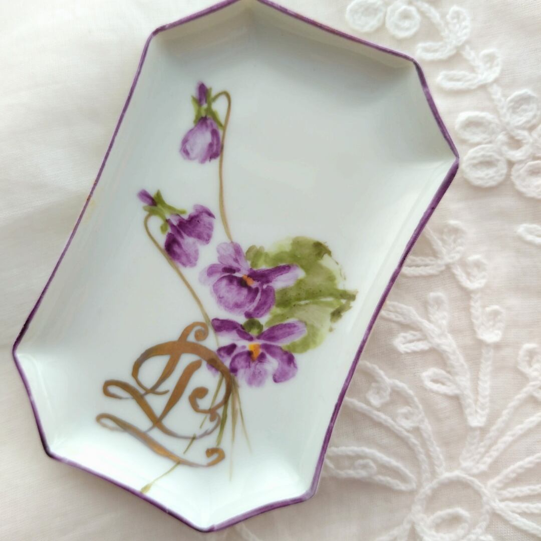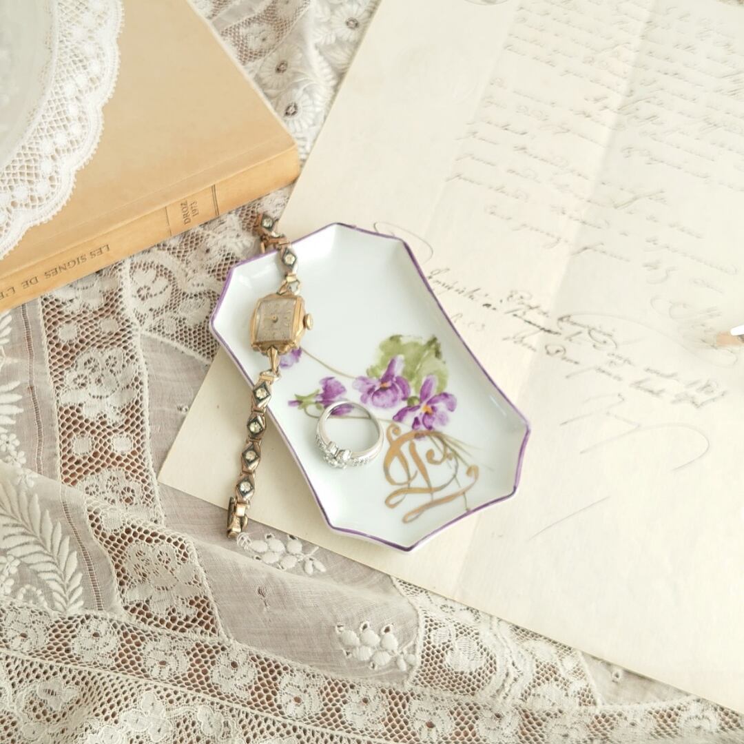アンティーク ヴィンテージ アクセサリートレイ スミレ ポーセリン