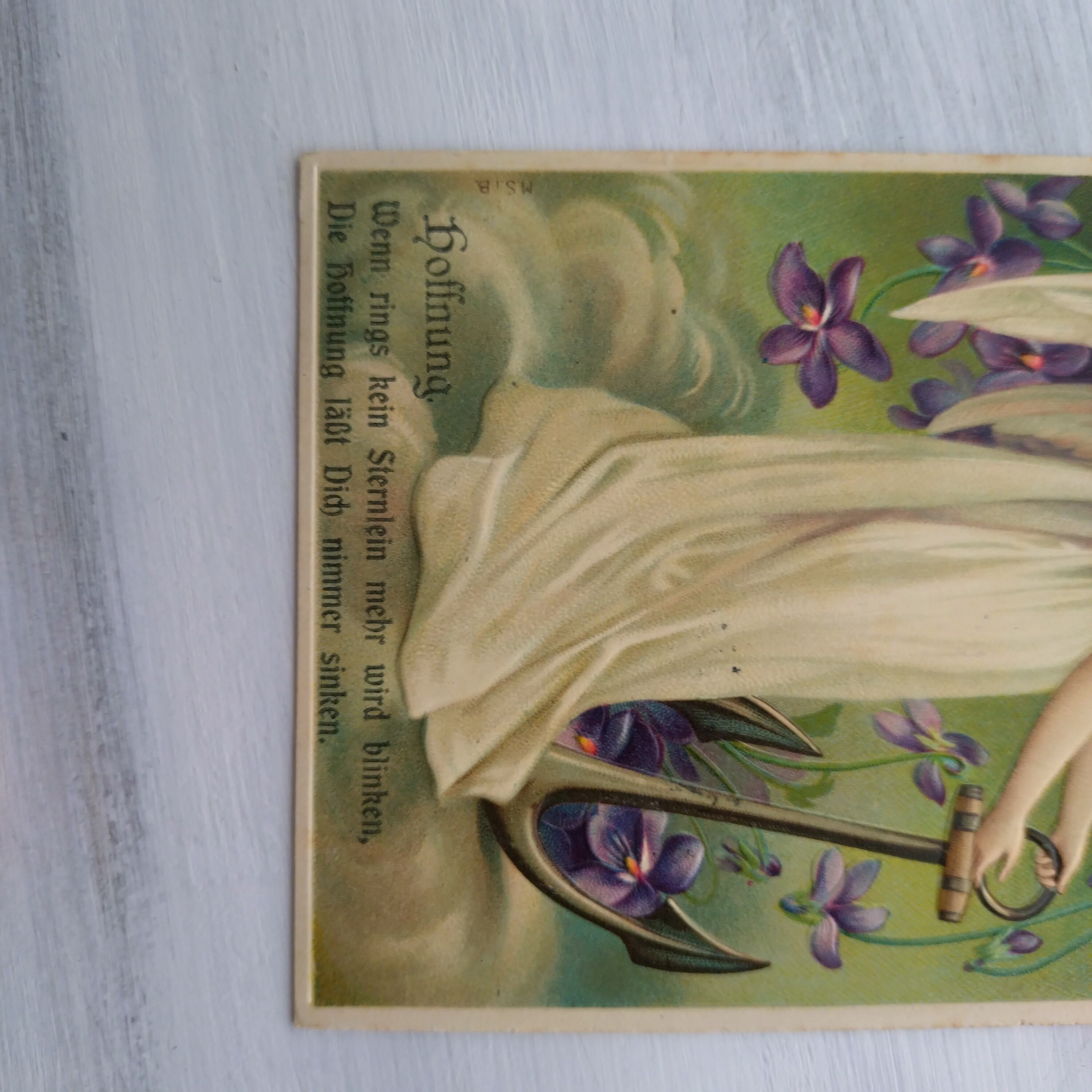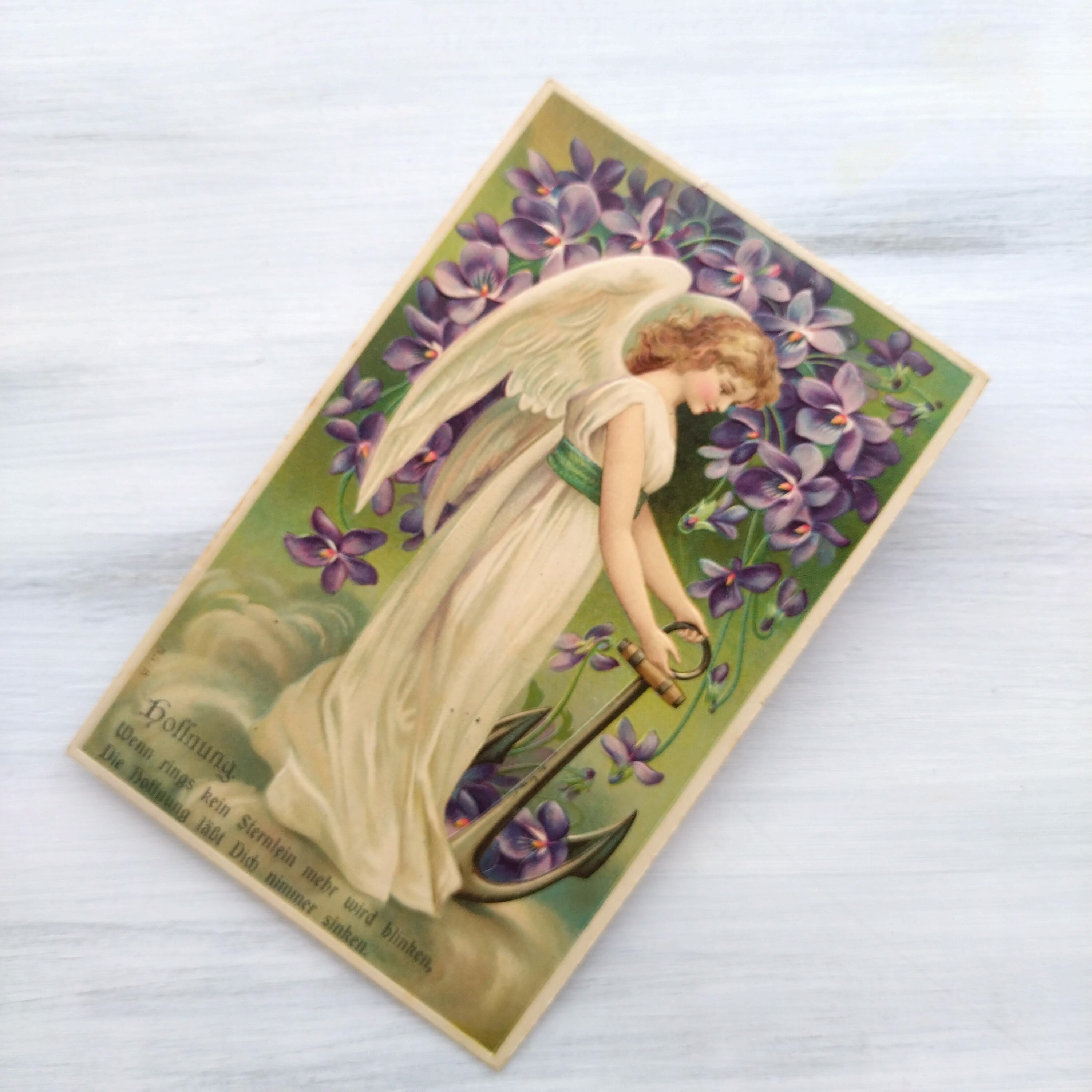 美しい天使のような女神さまが錨を持つ姿が描かれています。