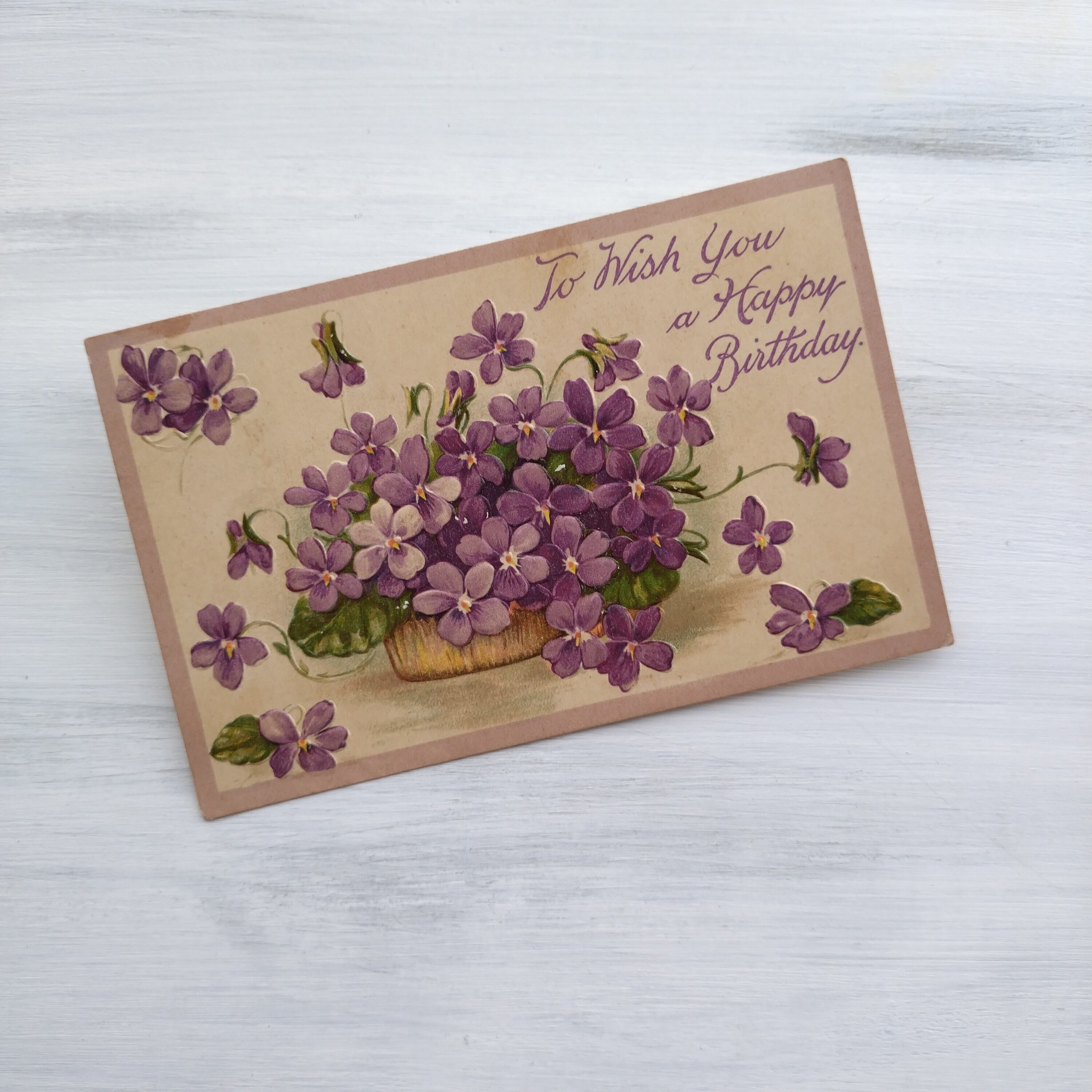 沢山のスミレが描かれたノスタルジックなカードは、1909年115年の時を経ています。
