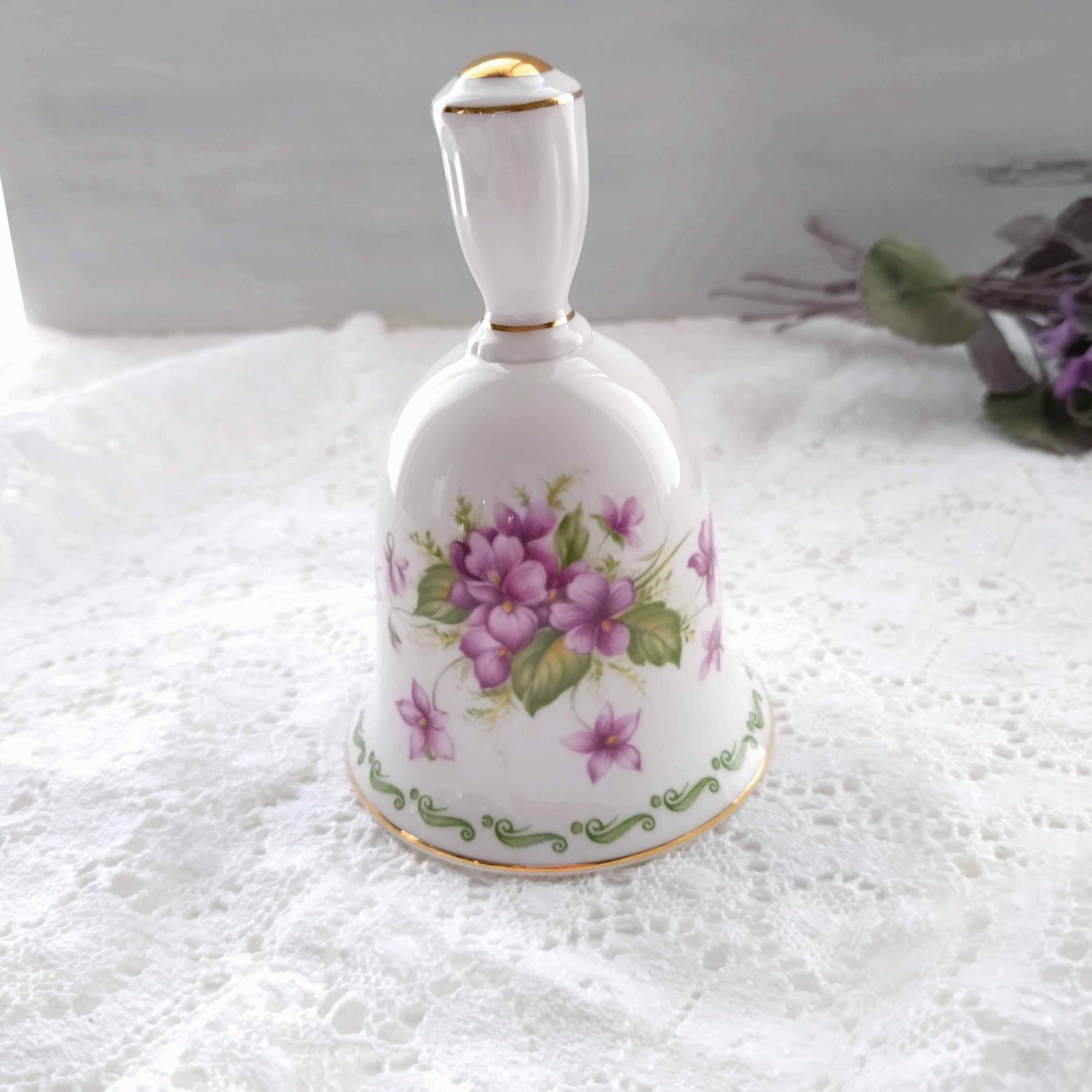 小さなスミレが優雅に描かれたこのハンドベルは、その美しいデザインだけでなく、鳴らすと気持ちを和ませる優しい音色も魅力です。
