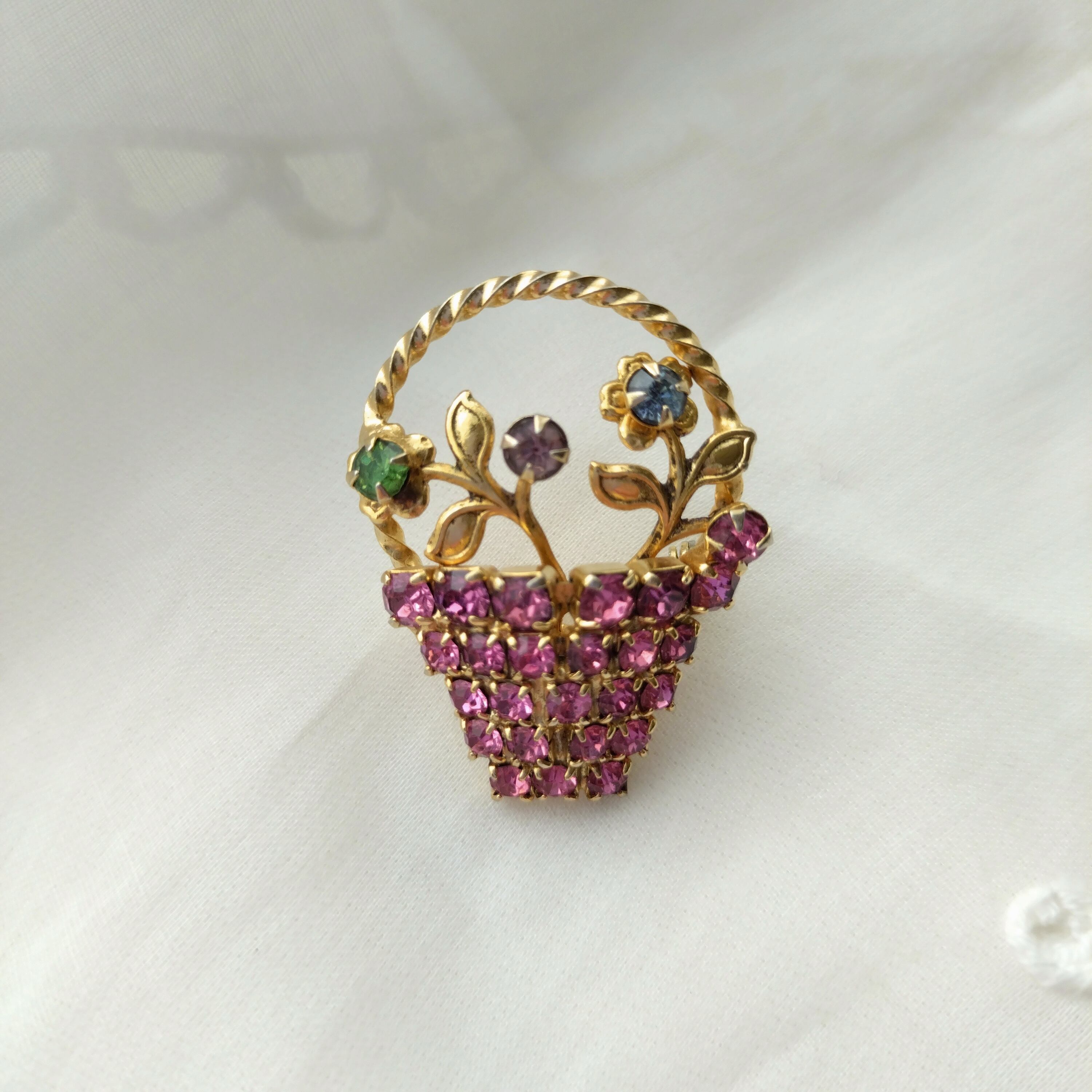 アンティーク ヴィンテージ フラワーバスケット 花籠 ブローチ
