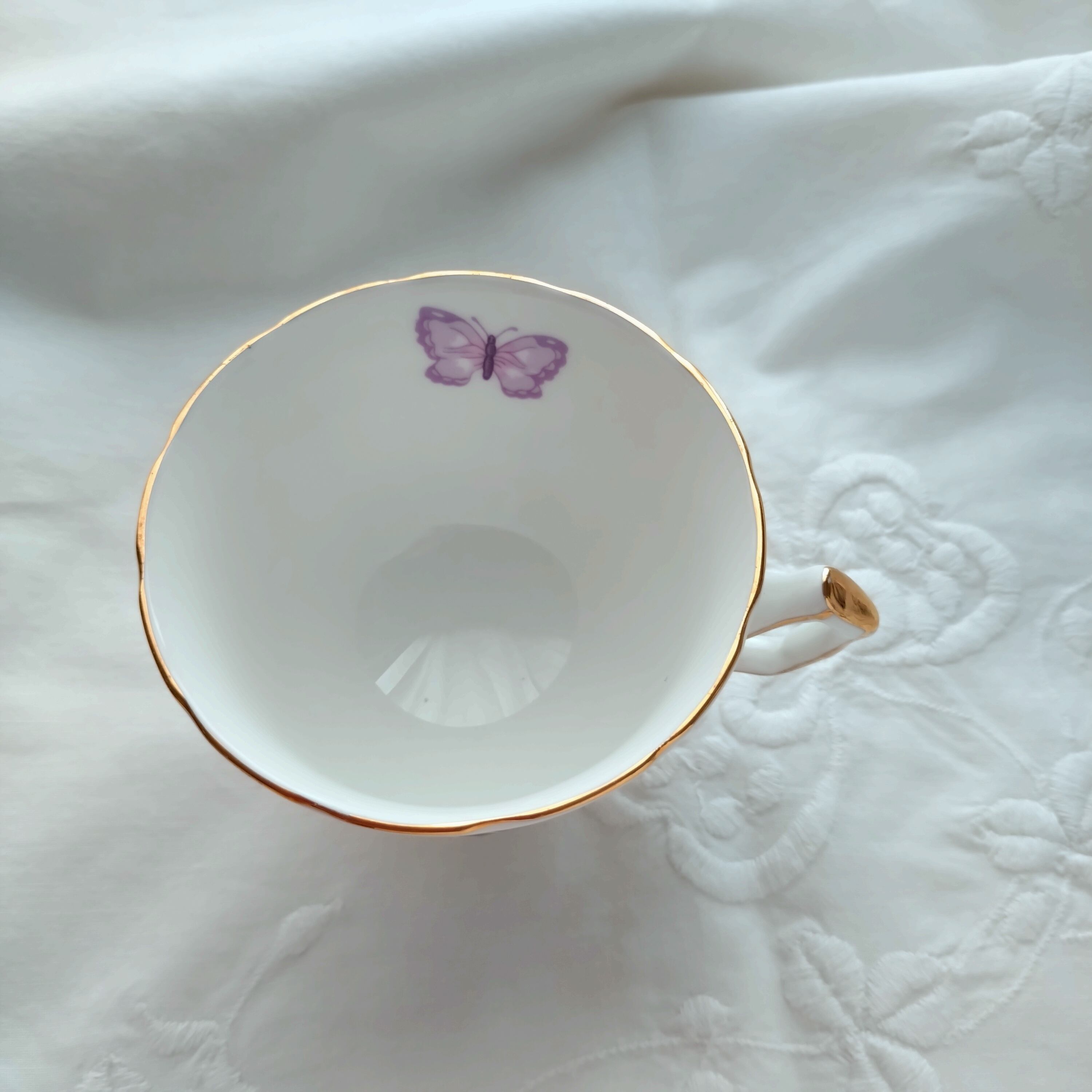 縁取りの金彩もスレも無く、上品で美しいデザインのティーカップで至福のひと時をお楽しみ下さい。