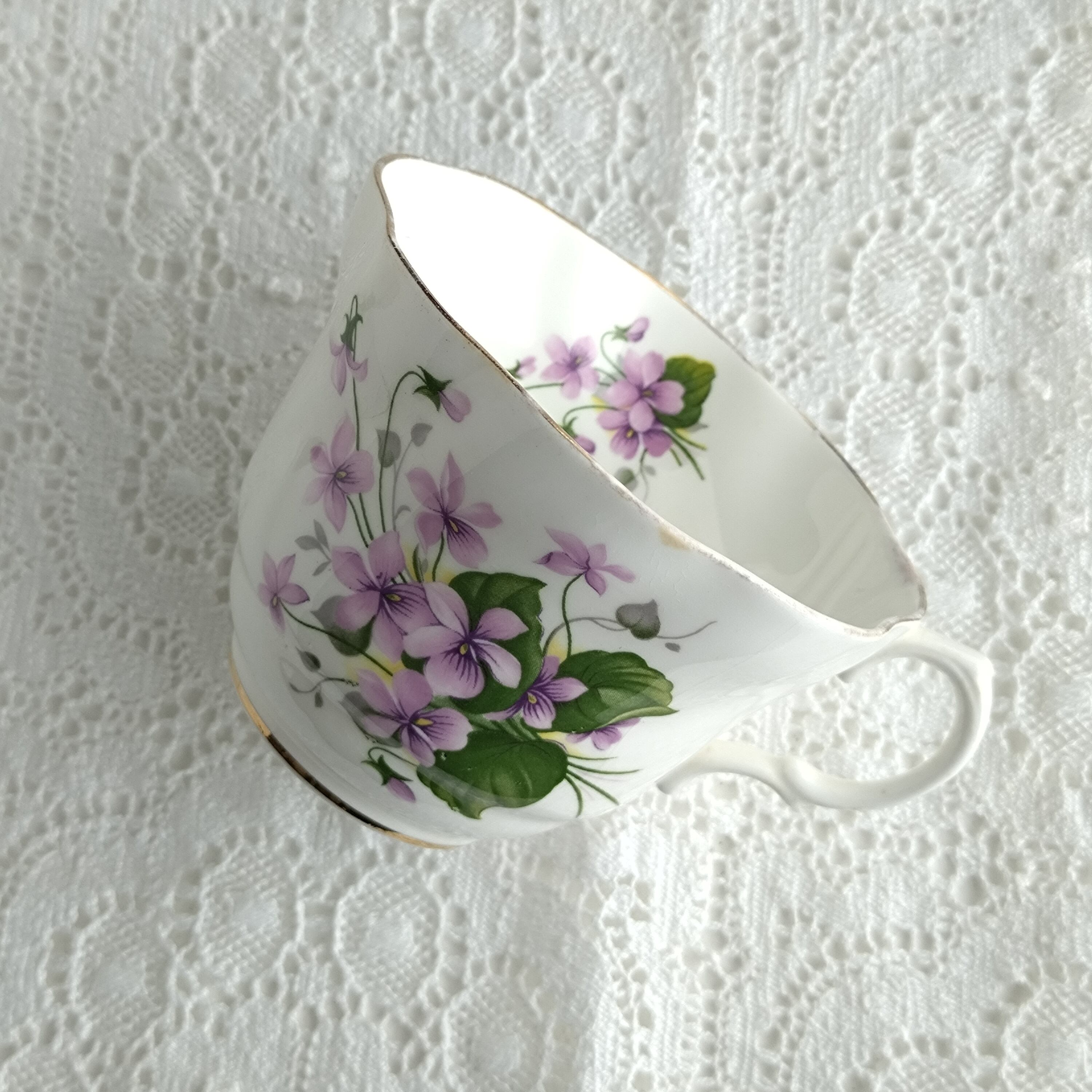 こちらのスミレカップ&ソーサーは、優しいスミレの絵柄が特徴的で、ティータイムに上品さを添える素敵なアイテムです。