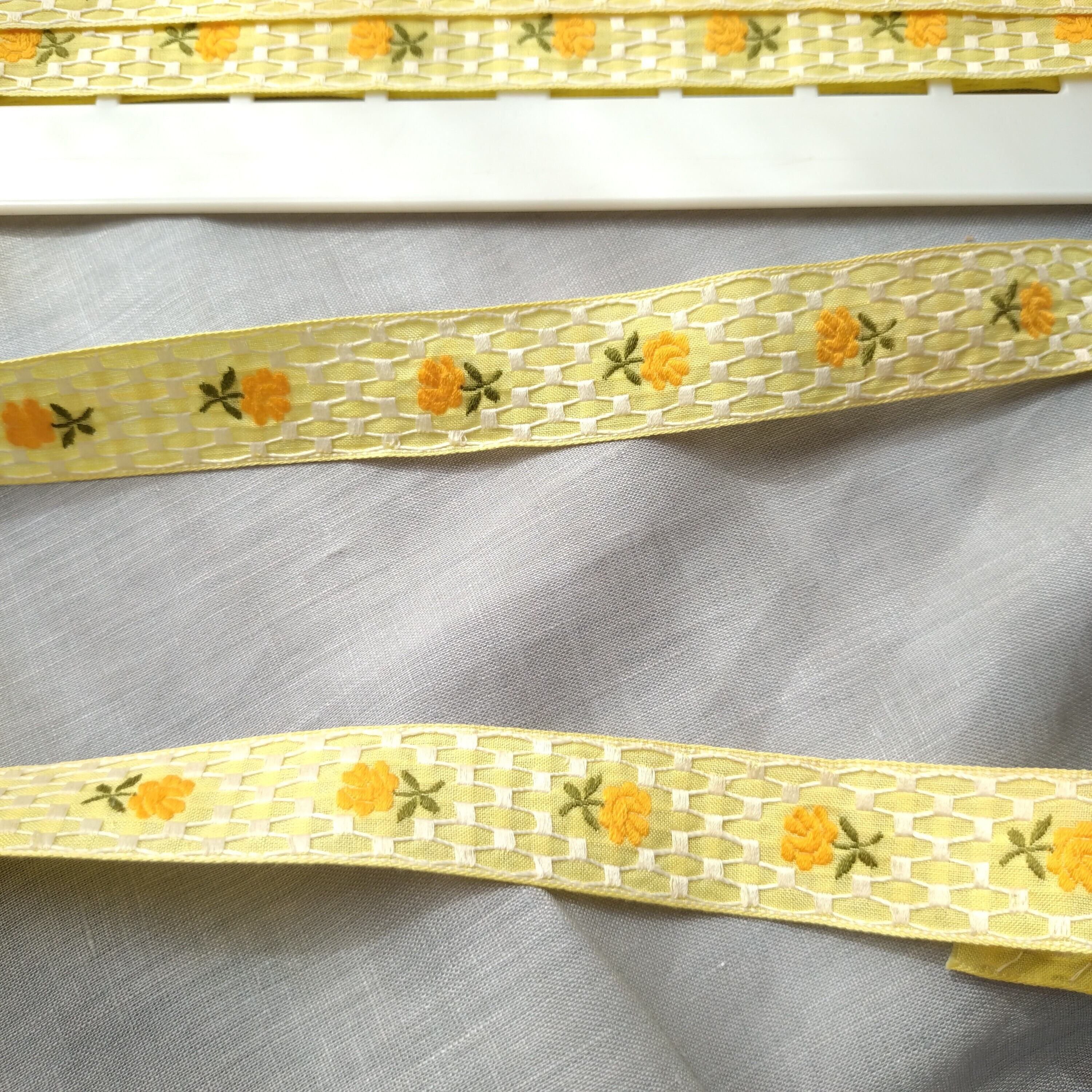 このリボンは、可愛らしい花模様と優しい色合いが魅力のアイテムです。お好きなクラフトやアクセサリー作りに最適で、あなたの創造力をかき立てる存在になることでしょう。
