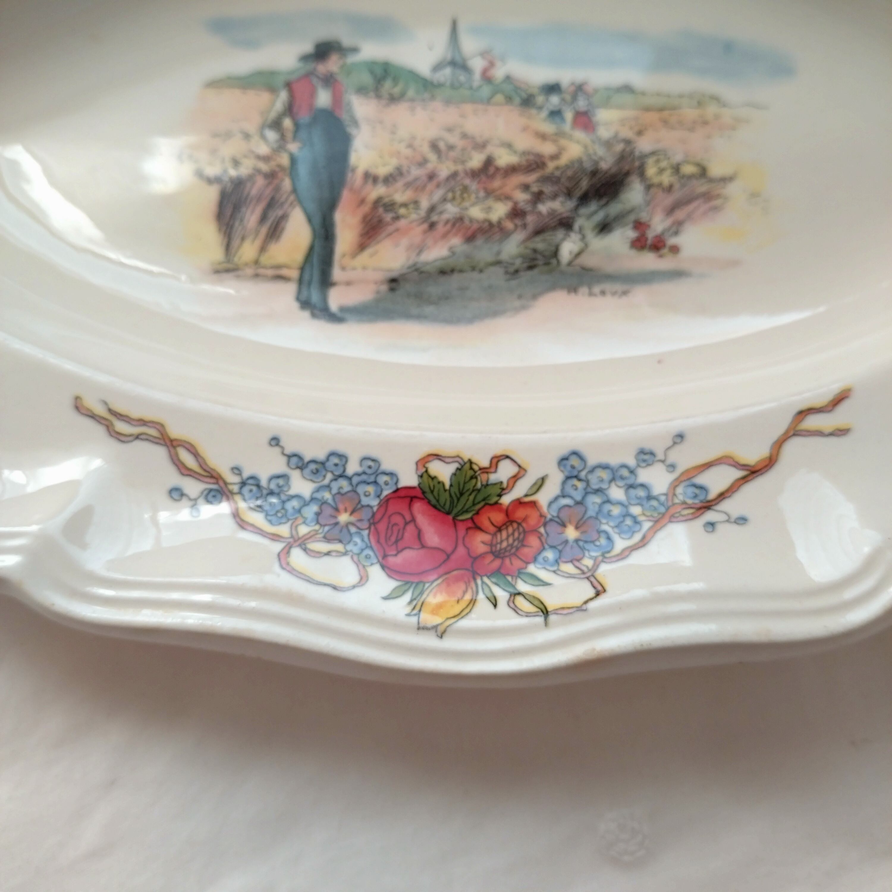 フランスの画家Henri Loux アンリ•ルーがSarreguemines サルグミンヌ窯のためにデザインしたObernai オベルネシリーズのラヴィエです。