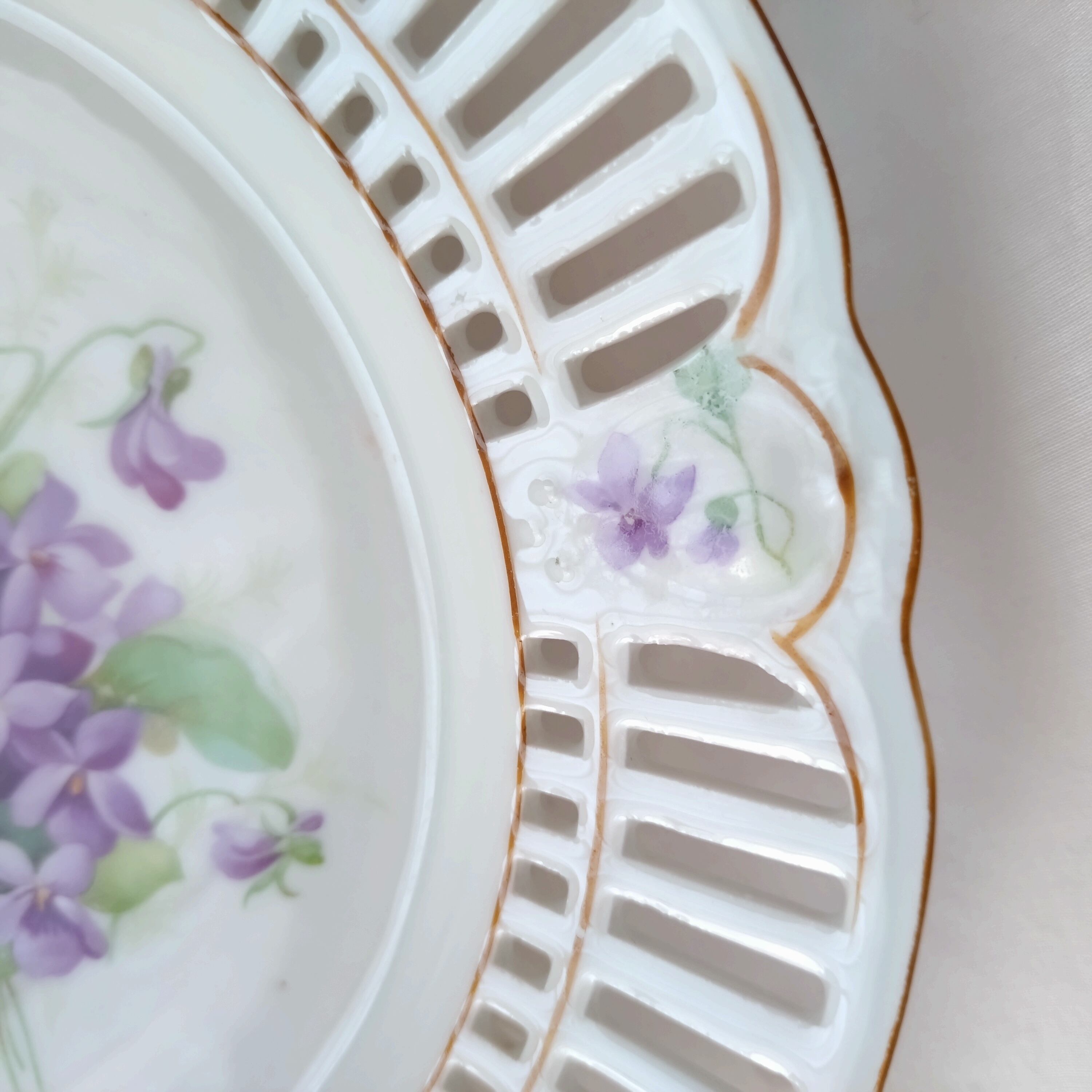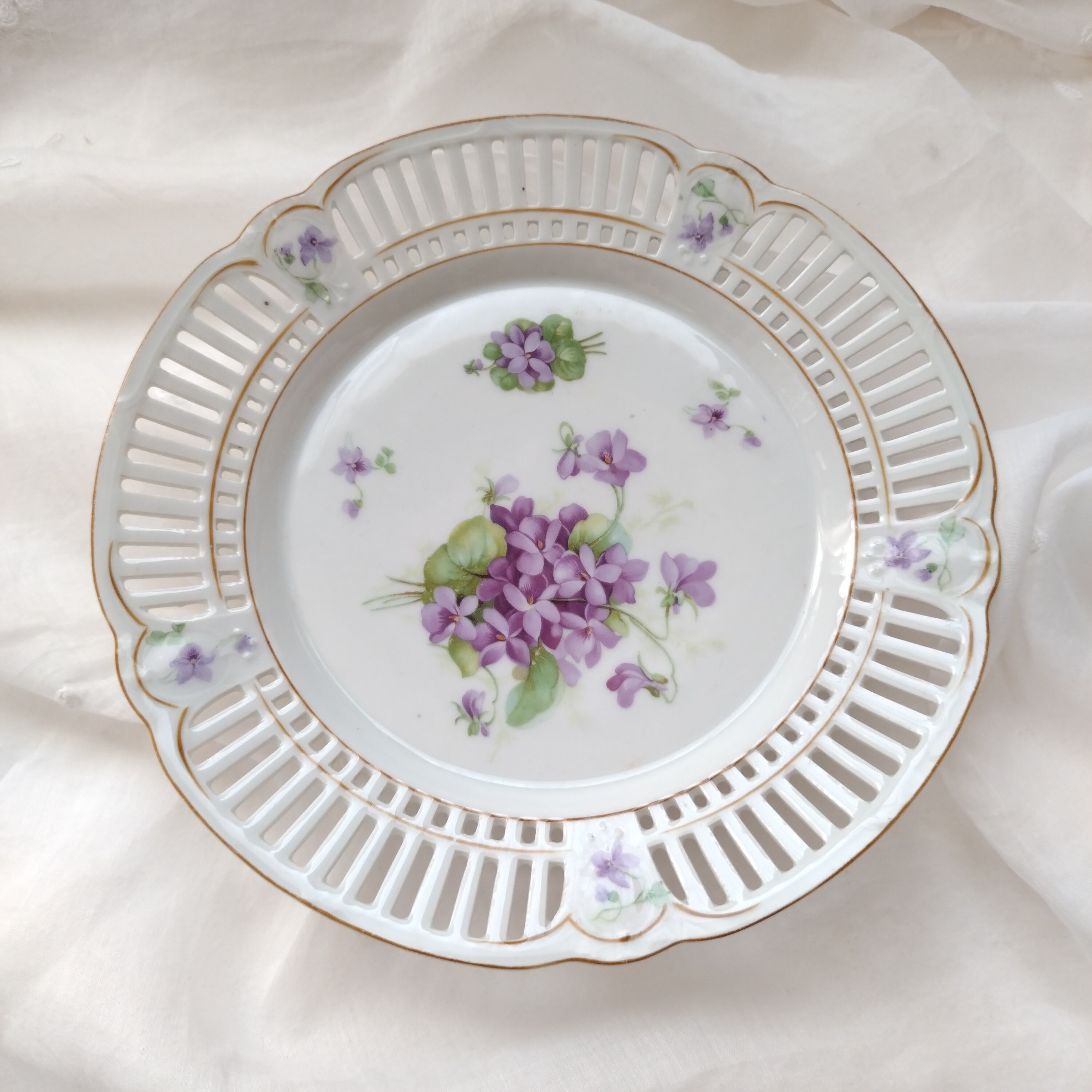 アンティーク ヴィンテージ スミレ レースプレート 透かし