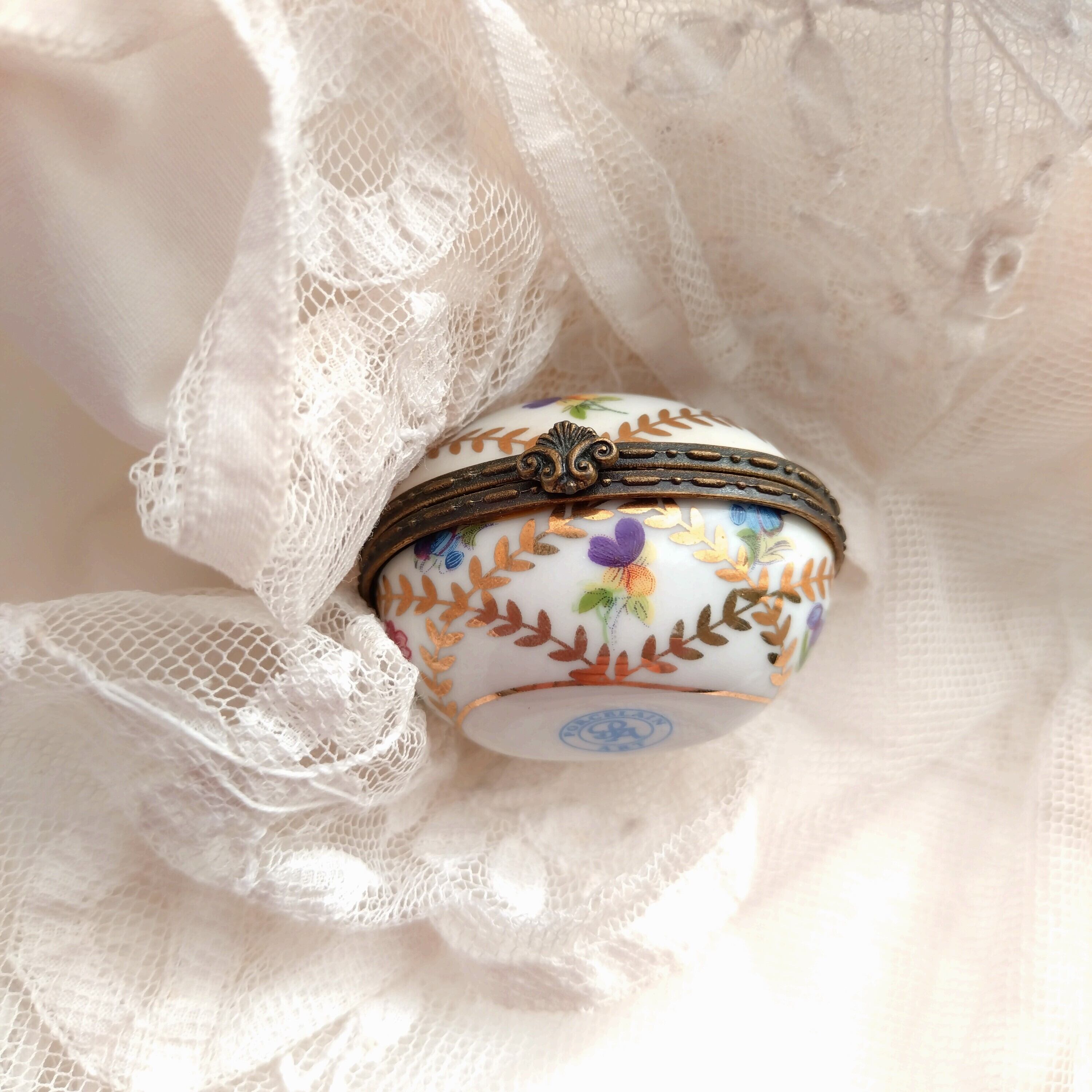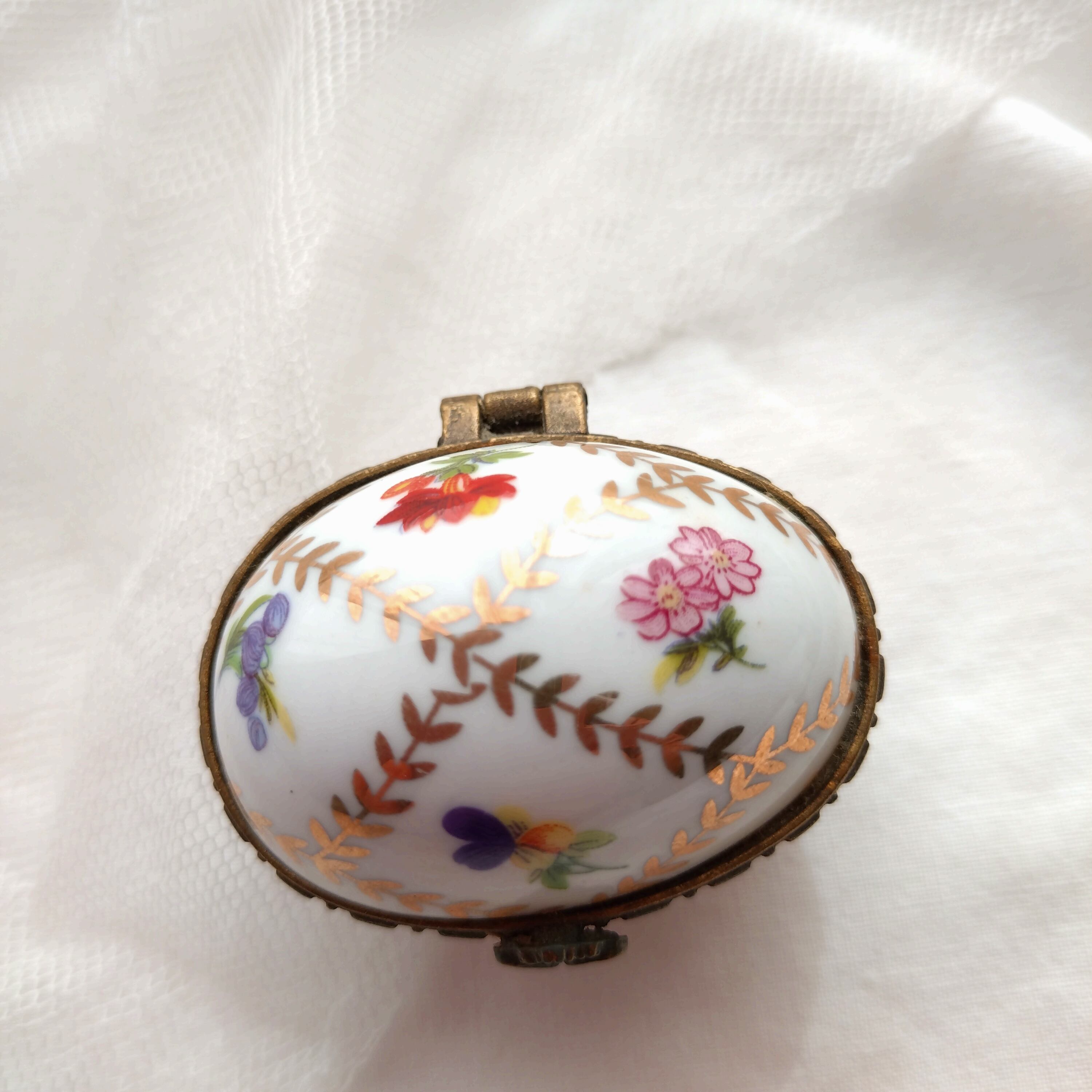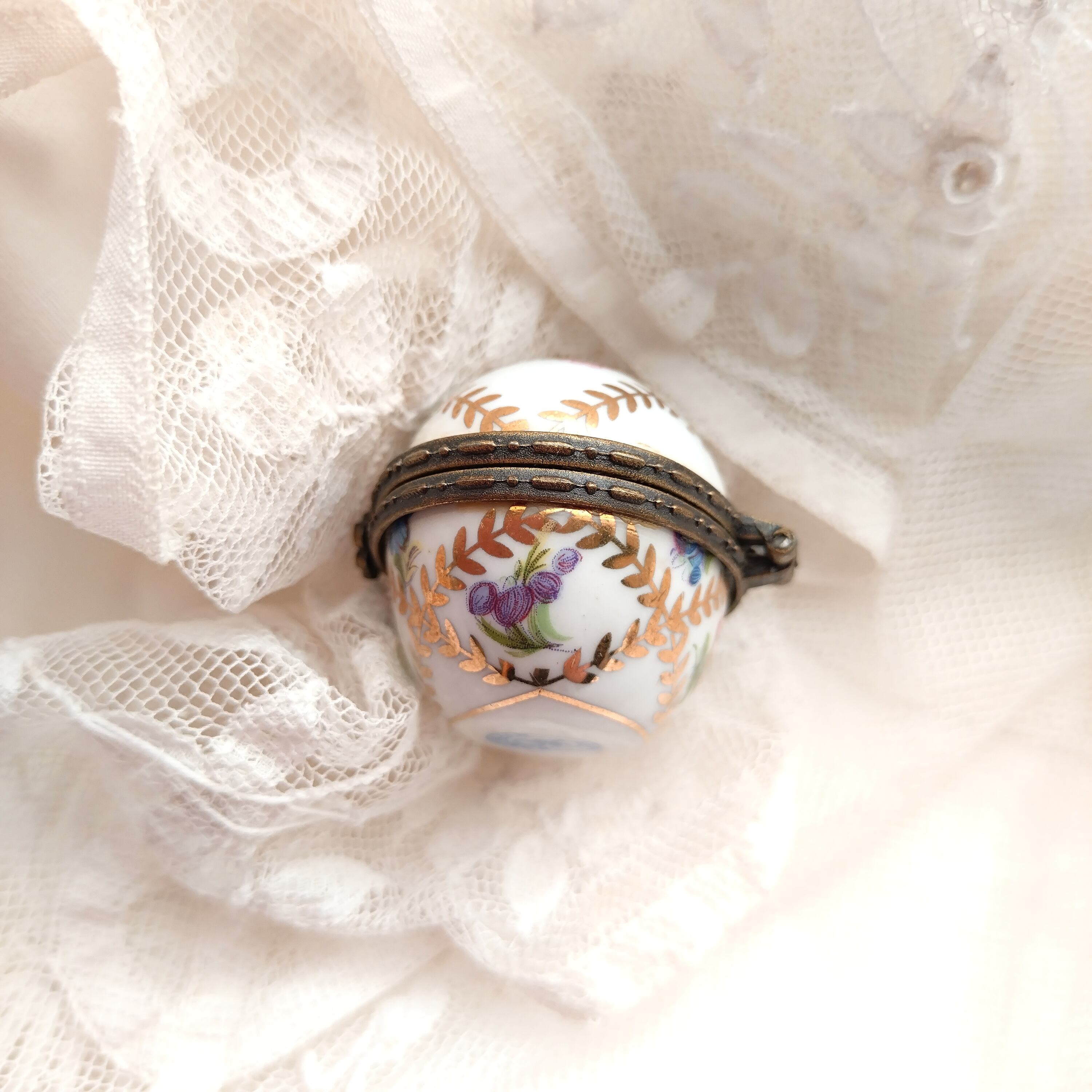 小さなお花が可愛らしいたまご型のフランス ポーセリンのジュエリーボックス