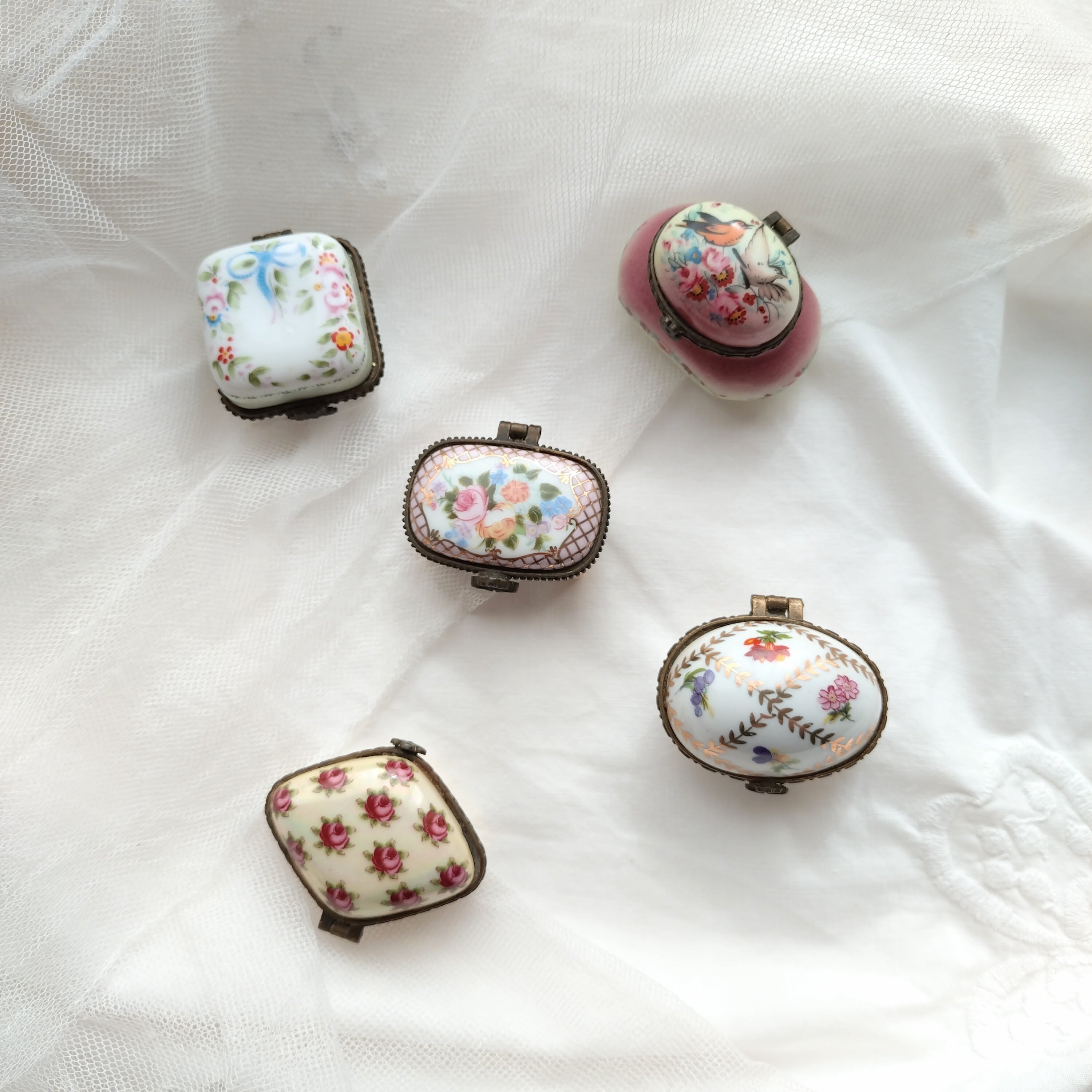 アンティーク ヴィンテージ トリンケットボックス ジュエリーケースフランス ポーセリンB